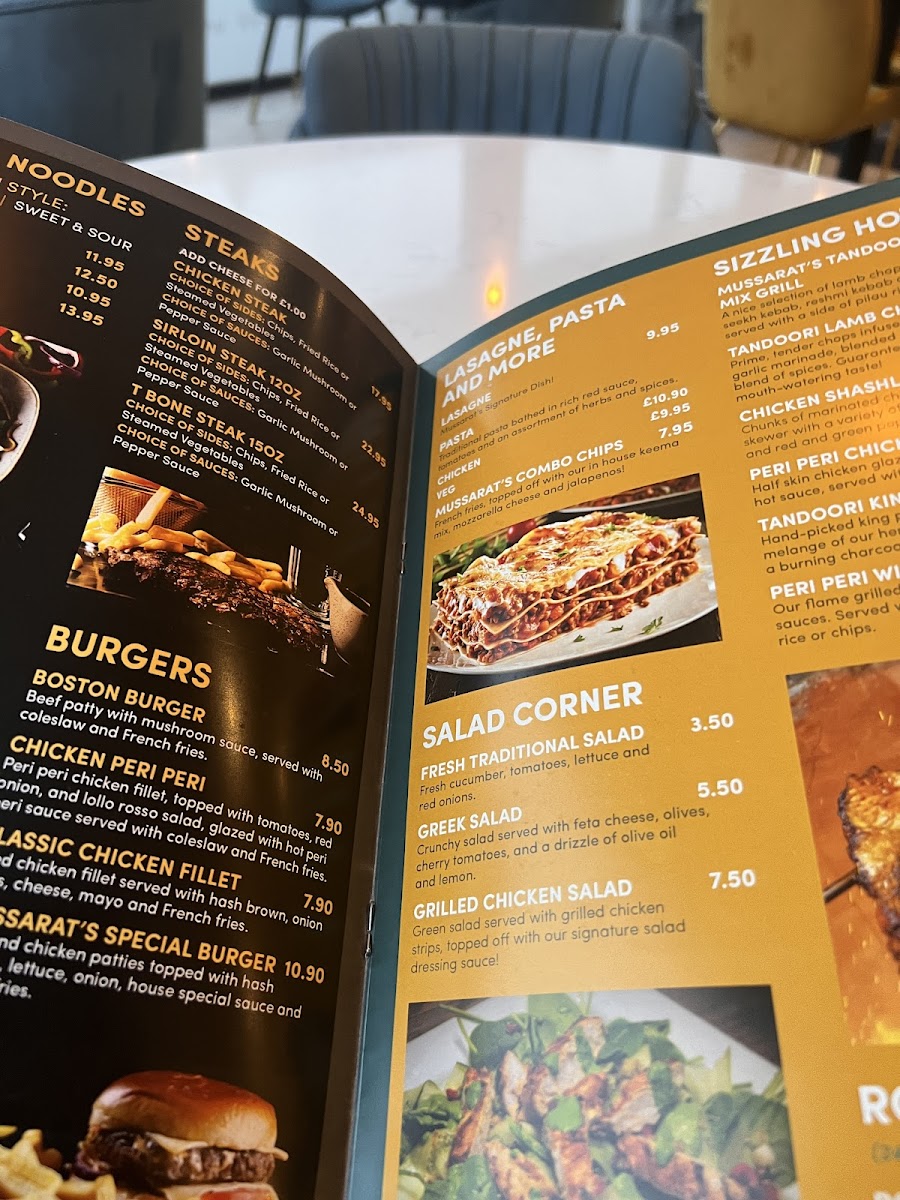 For a sizzling main course, don't miss the Chicken Shashlik and mouthwatering Tandoori Lamb Chops, each dish infused with Mussarat's unique spice blends. Sides like French Fries and Potato Wedges complement these delectable offerings.